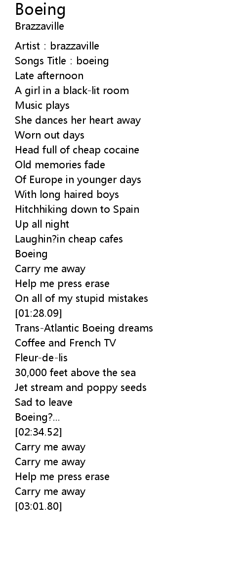 | [00:02.19] | Songs Title: boeing |