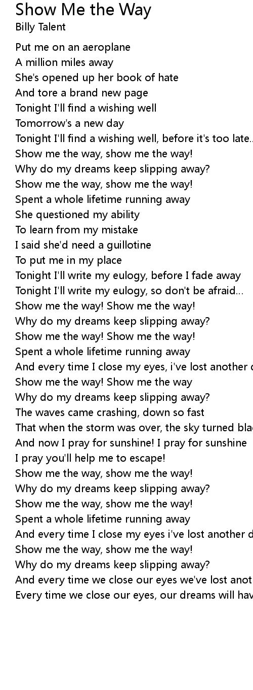 | Show me the way! Show me the way! | |