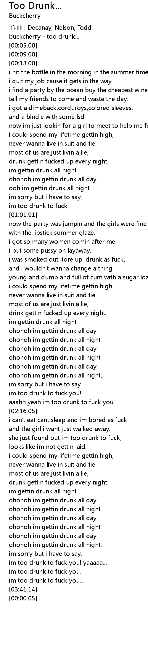 | [01:59.08] | ohohoh im gettin drunk all day |