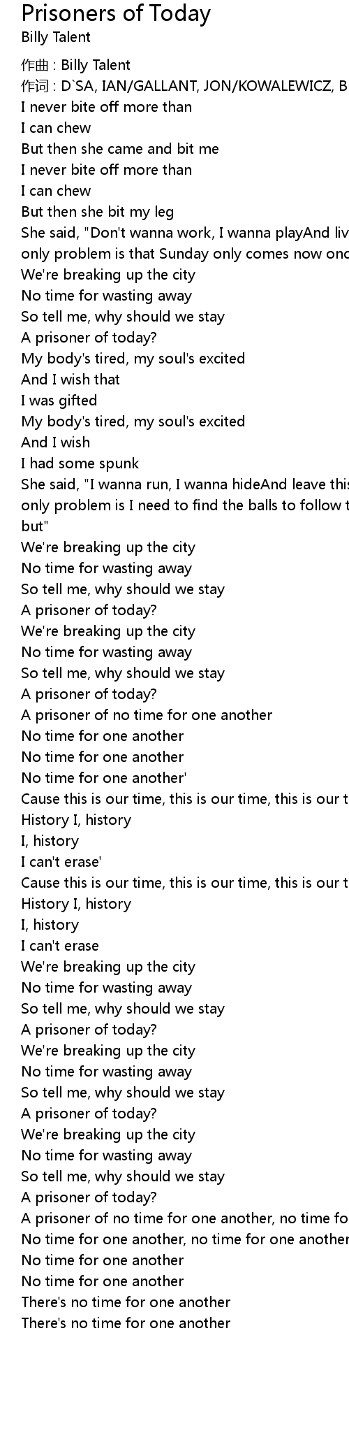 | 作词 : D`SA, IAN/GALLANT, JON/KOWALEWICZ, BEN/SOLOWONIUK, AARON | |