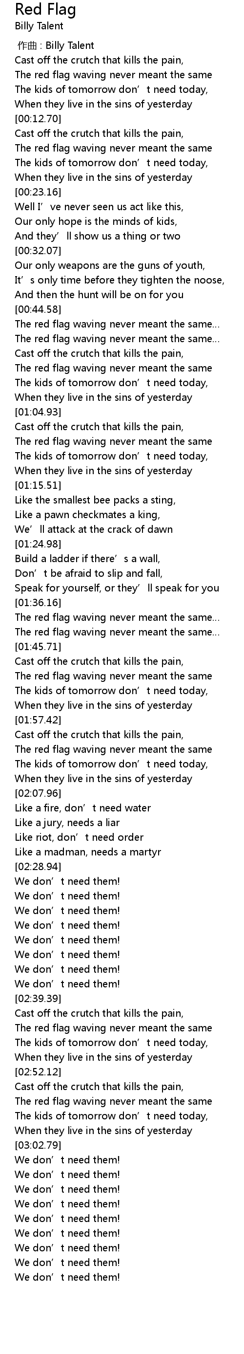 | [01:41.71] | The red flag waving never meant the same |