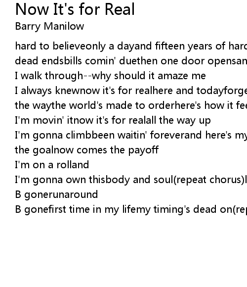 I always knewnow it's for realhere and todayforget about dreamin'it's real all the waythe world's made to orderhere's how it feelsmine and |