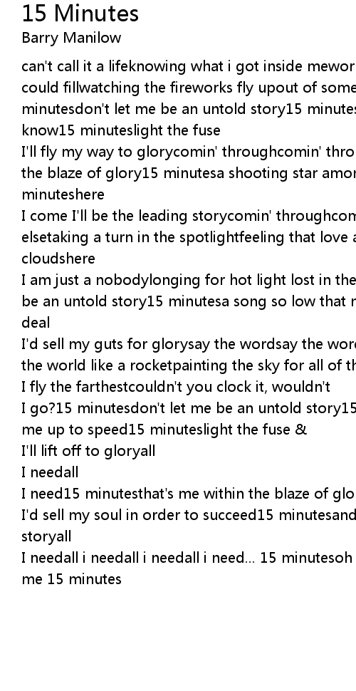 I am just a nobodylonging for hot light lost in the crowd15 minutesdon't let me be an untold story15 minutesa song so low that no one ever heard15 minutesmake a deal |