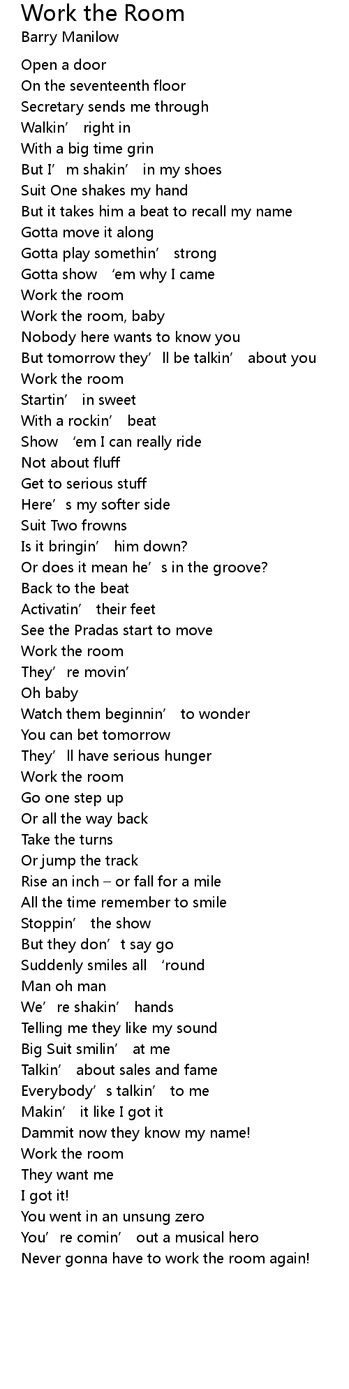| Song | Work the Room |