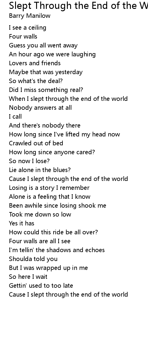 Cause I slept through the end of the world |