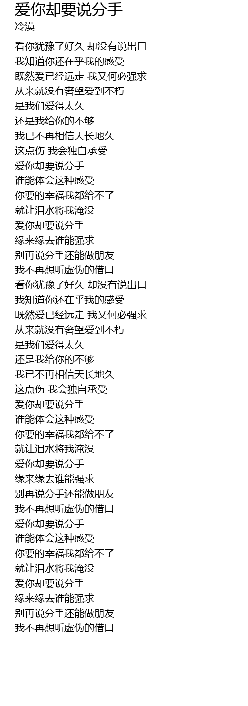 | [03:51.340] | ài nǐ què yào shuō fēn shǒu |