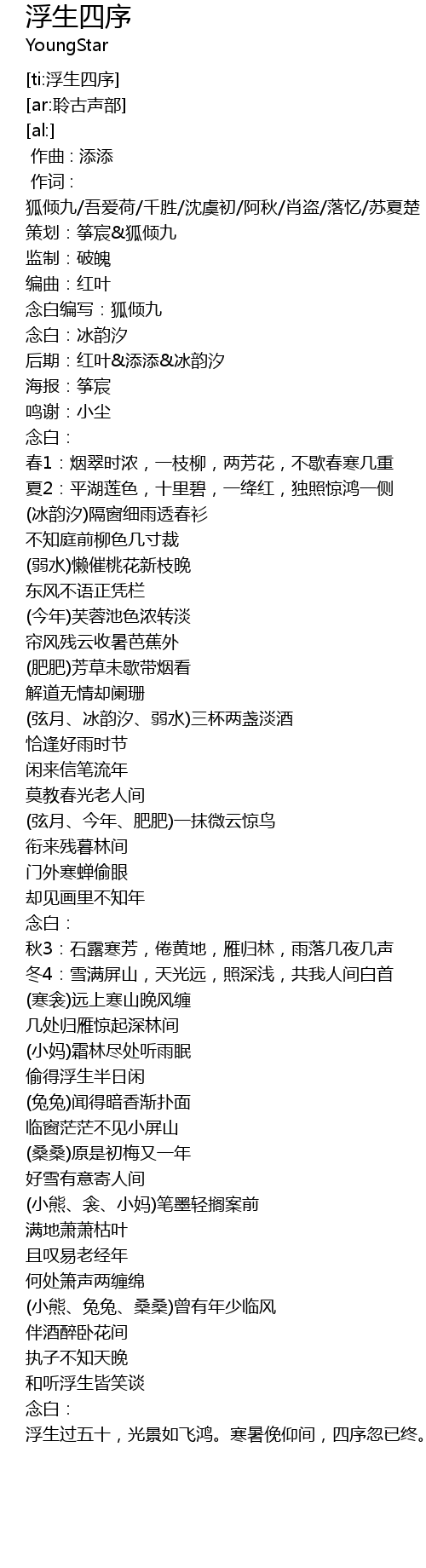 | [00:00.01] | 策划:筝宸&狐倾九 |