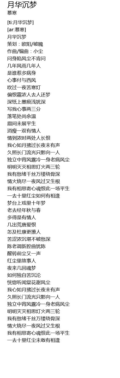| [00:41.898] | piān hèn shuāng nóng rén qù rén hái mèng |