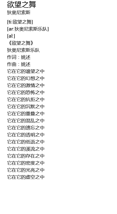 | [00:16.41] | 狄奥尼索斯乐队 |
