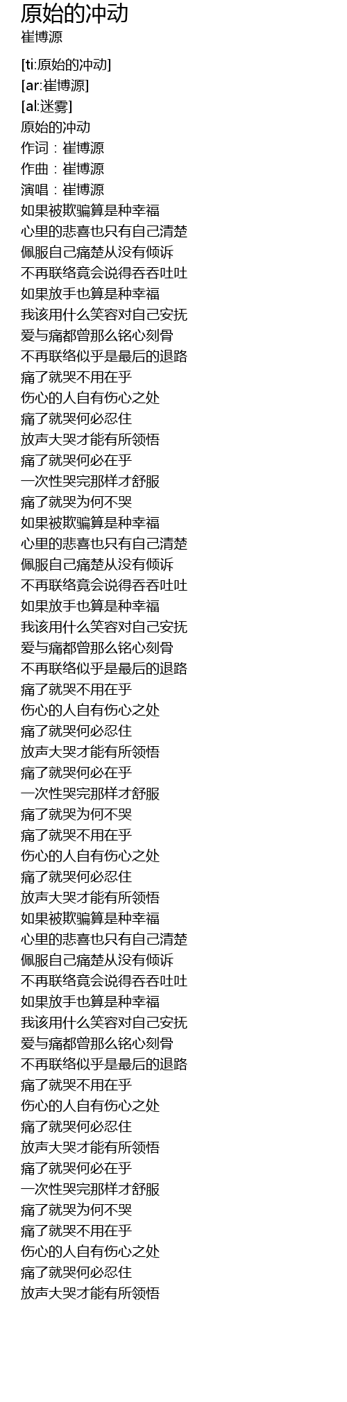 | [00:02.810] | yuán shǐ de chōng dòng |