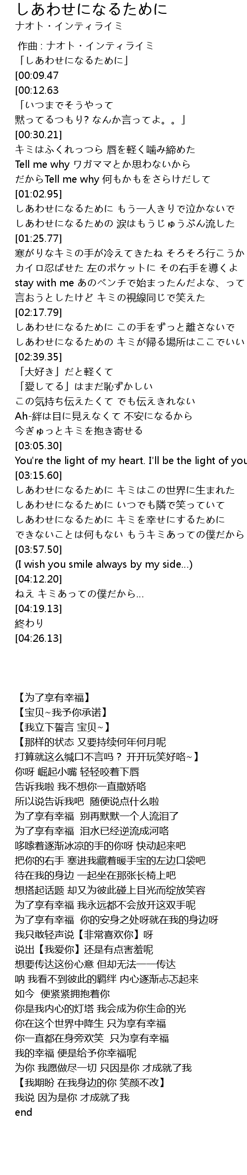 | [03:36.89] | しあわせになるために キミを幸せにするために |