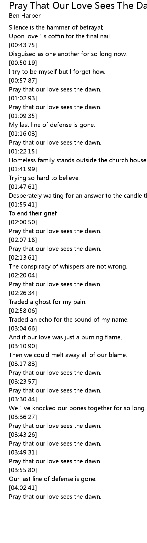 | [00:32.42] | Silence is the hammer of betrayal; |
