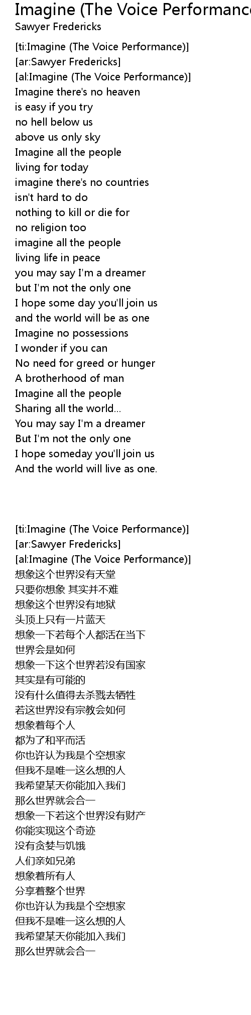 [ti:Imagine (The Voice Performance)] |