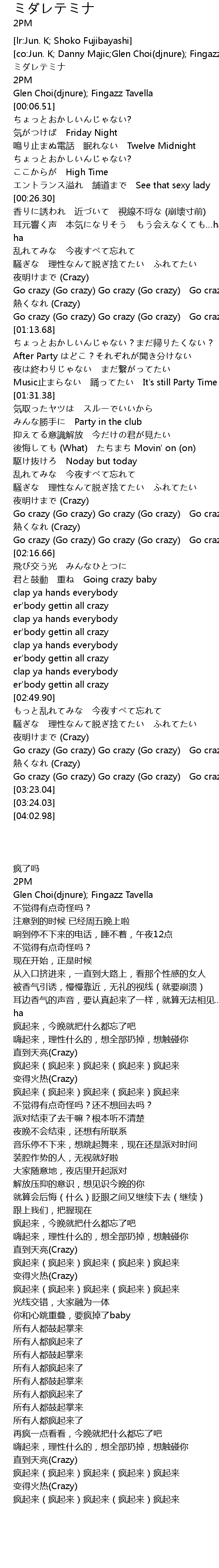 | [02:03.85] | Go crazy Go crazy Go crazy Go crazy Go crazy |