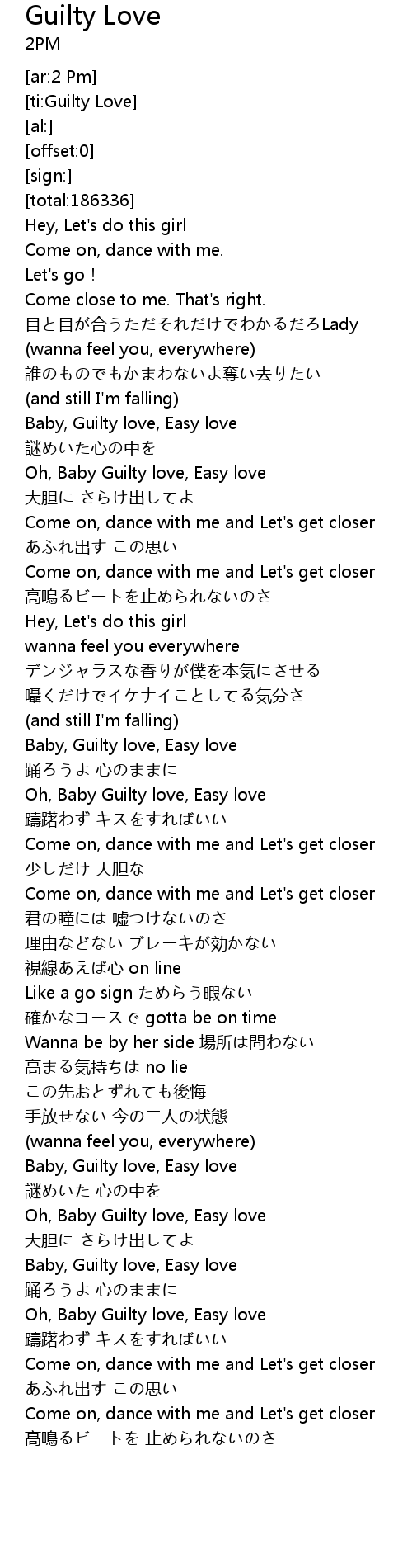 | [00:37.60] | Oh, Baby Guilty love, Easy love |