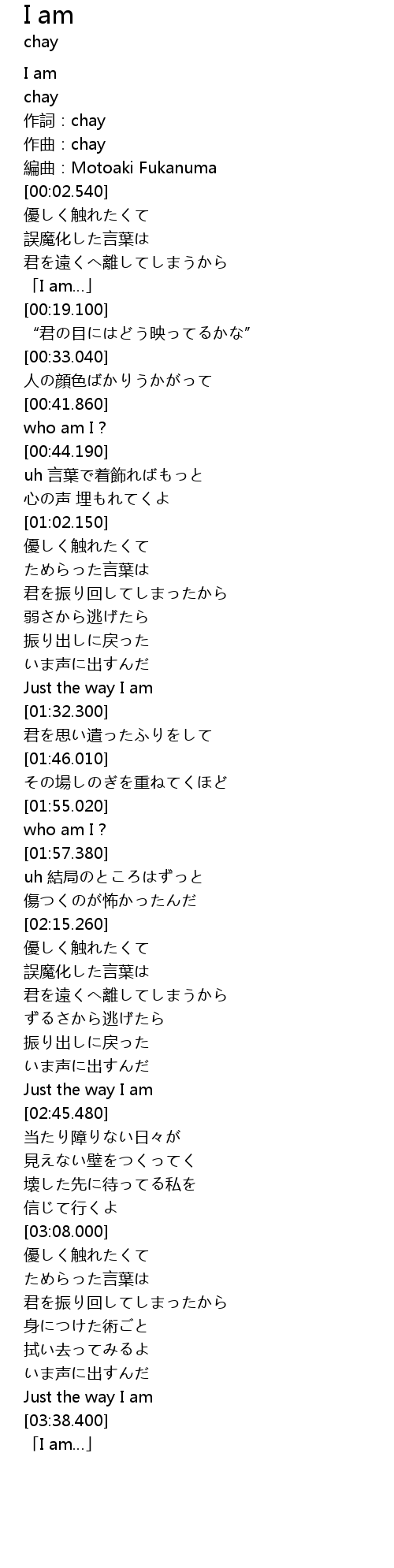 | [00:01.200] | 作詞:chay |