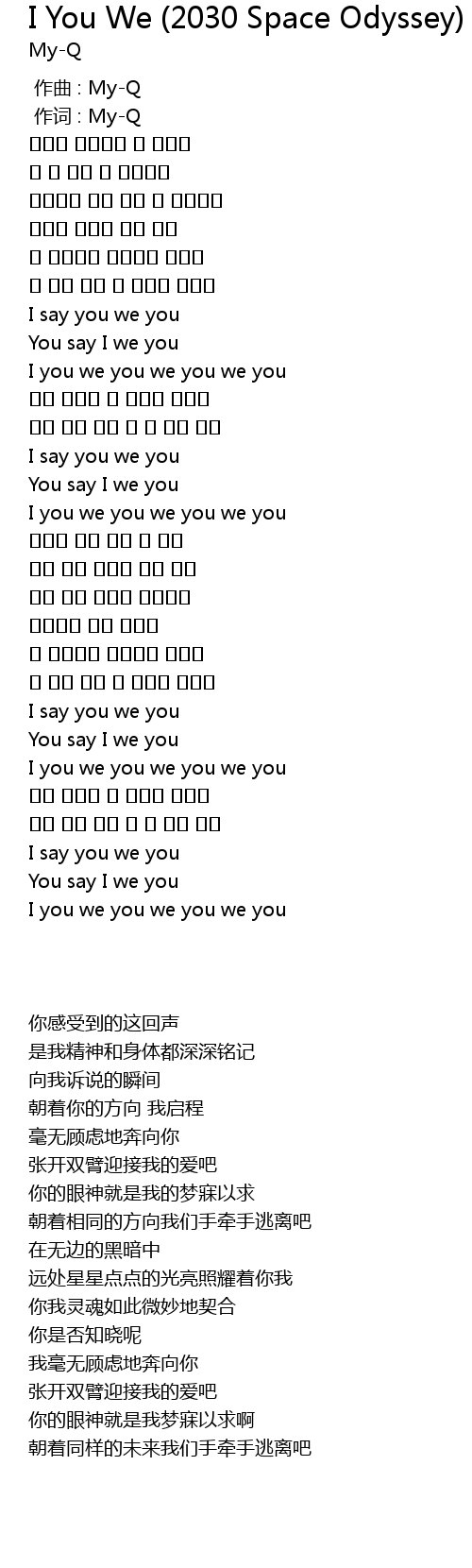 | [00:01.00] | 作词 : My-Q |
