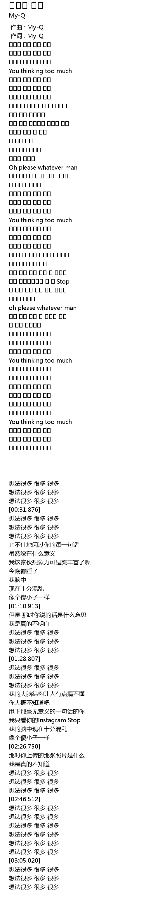 | [00:01.00] | 作词 : My-Q |