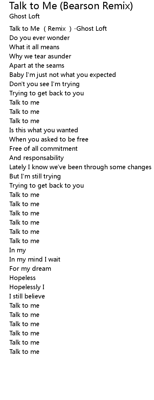 | [00:00.00] | Talk to Me Remix Ghost Loft |