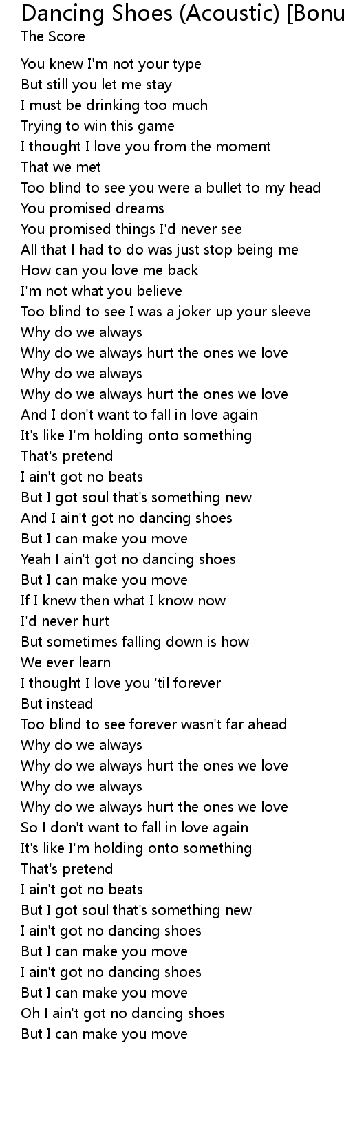 | [01:29.71] | Yeah I ain't got no dancing shoes |