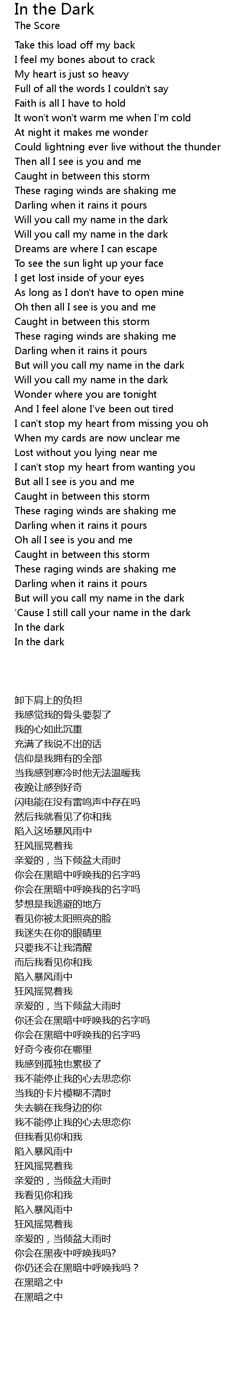 Will you call my name in the dark |