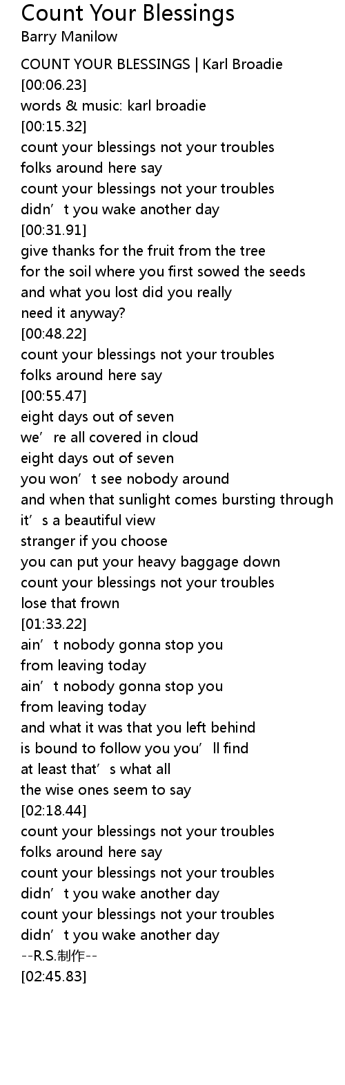 | [02:35.30] | count your blessings not your troubles |