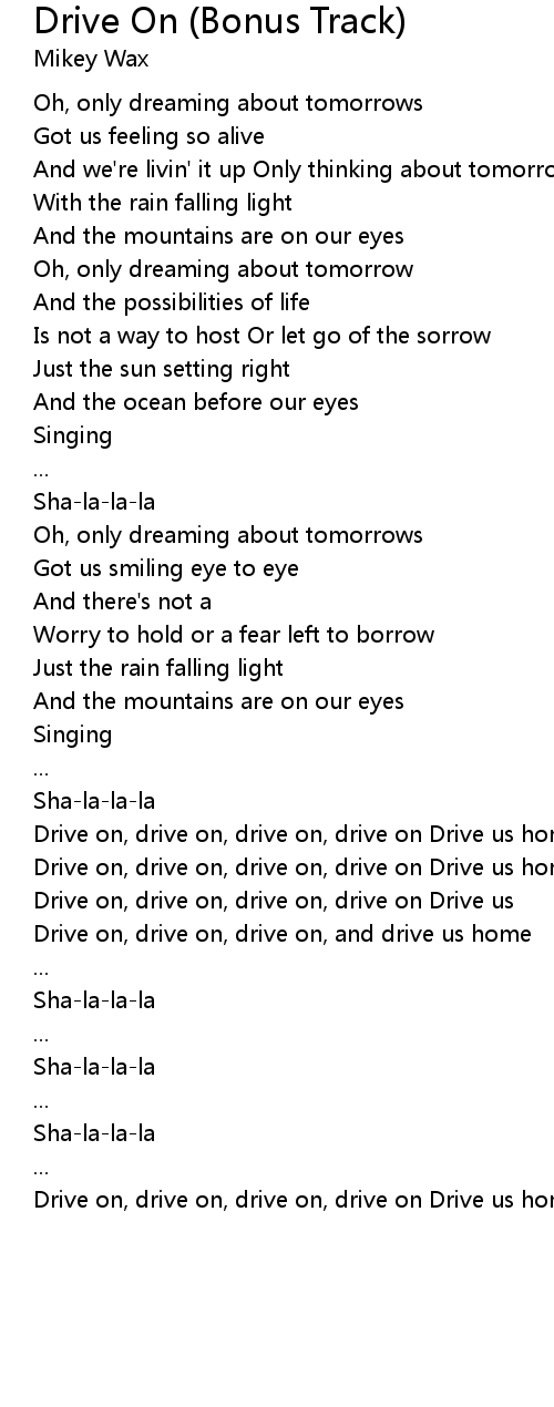 | Drive on, drive on, drive on, drive on Drive us home | |