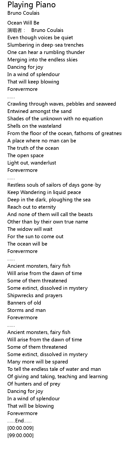 | [02:03.23] | The ocean will be |
