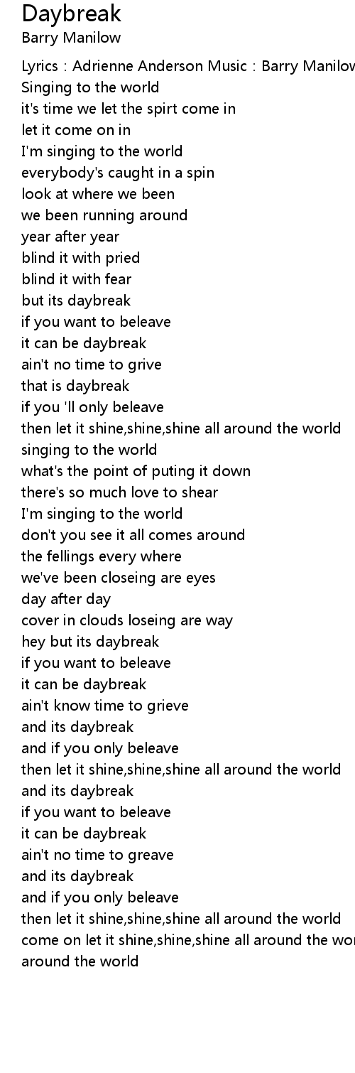 | Lyrics: Adrienne Anderson Music: Barry Manilow | |