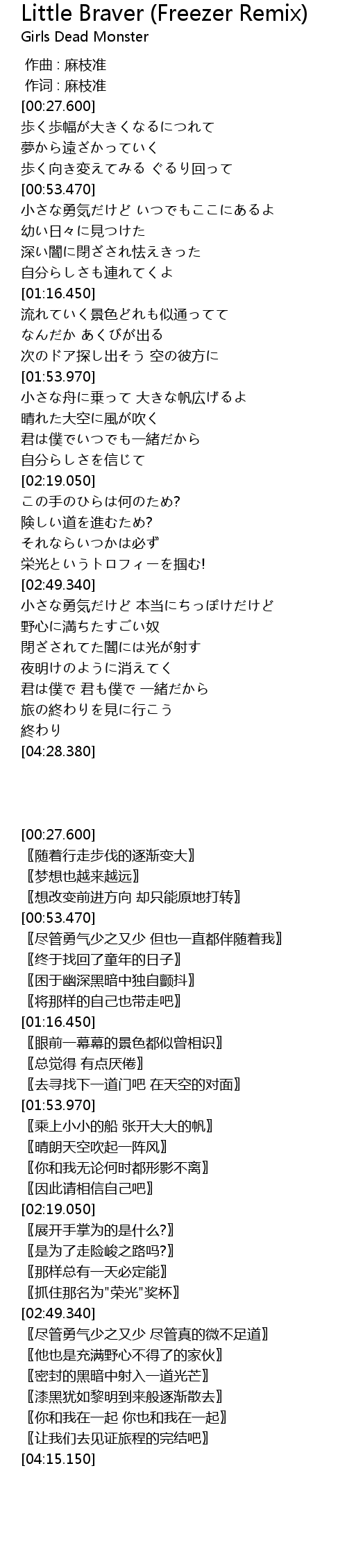| [02:51.520] | 小さな勇気だけど 本当にちっぽけだけど |