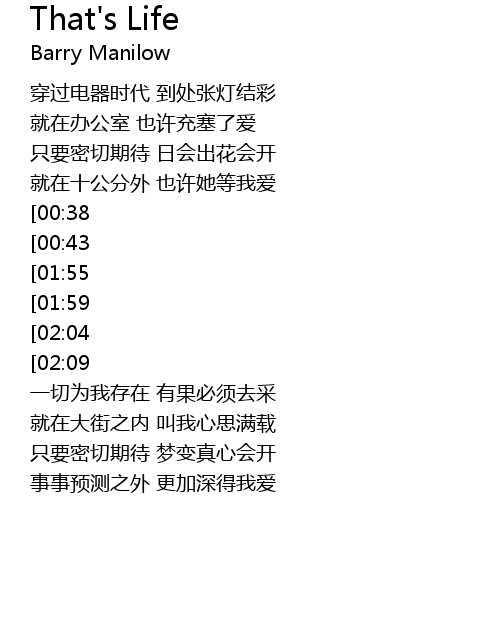 | Song | That's Life |