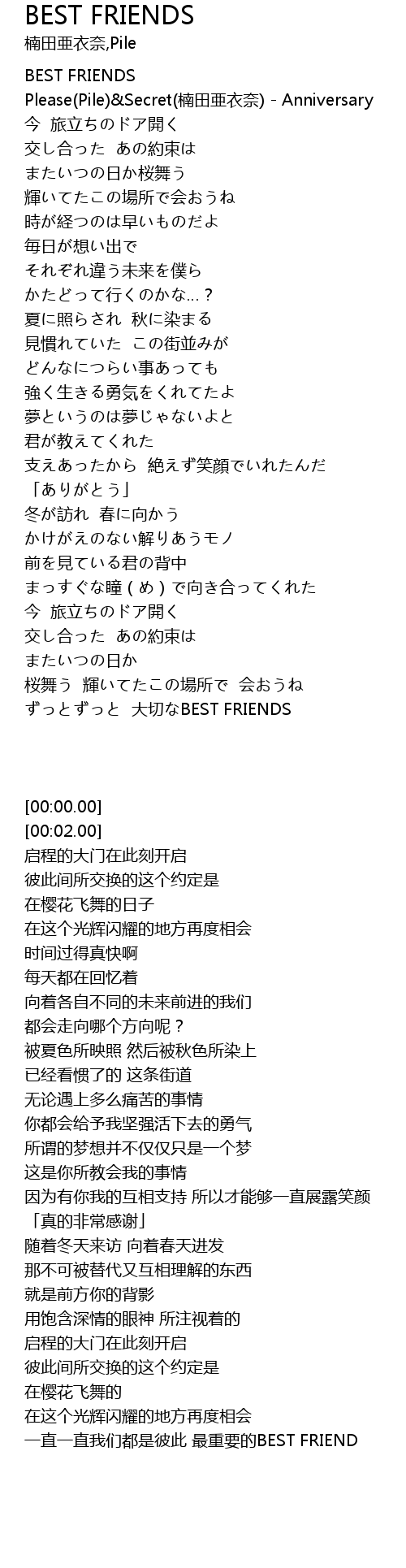 | [02:54.75] | ずっとずっと 大切なBEST FRIENDS |