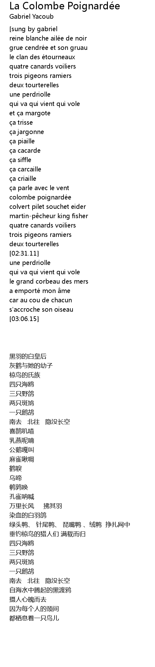 | [02:27.60] | deux tourterelles |