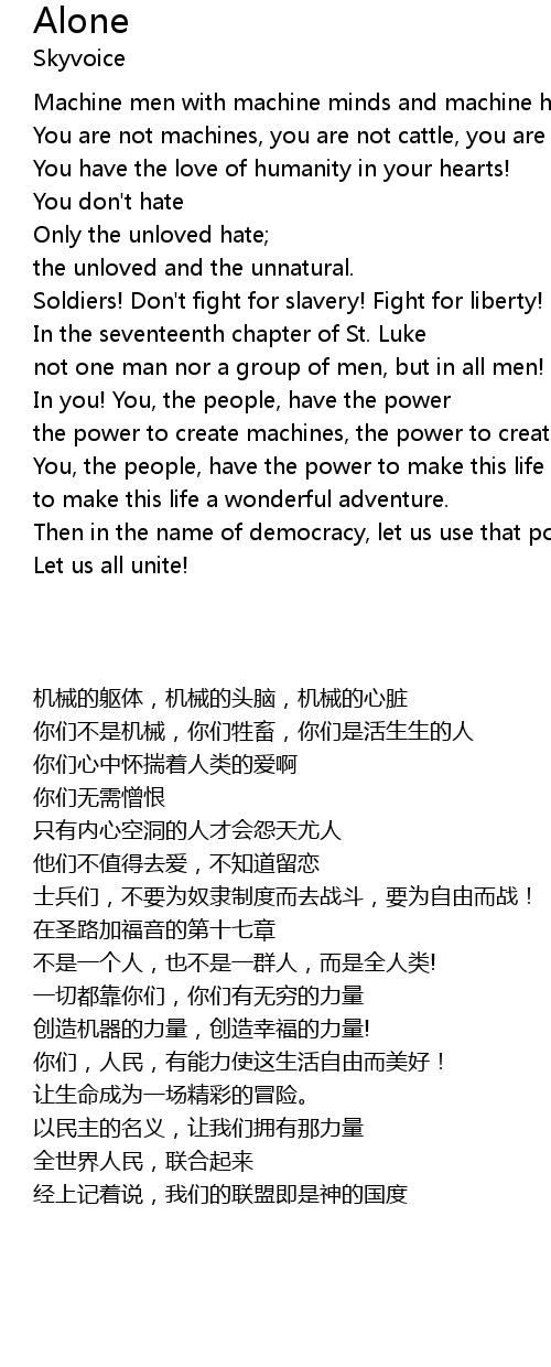 | [00:21:00] | You are not machines, you are not cattle, you are men! |
