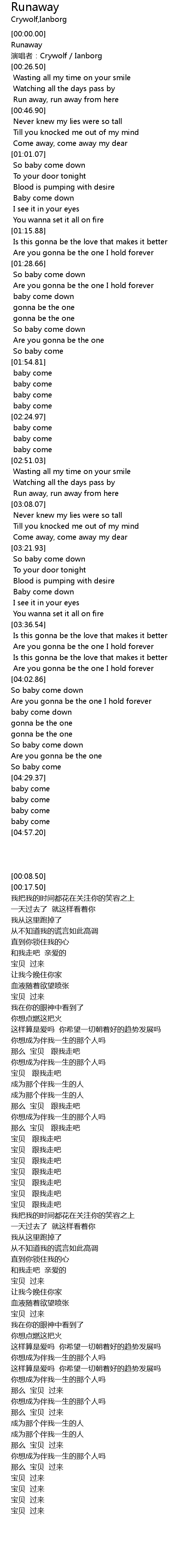 | [00:08.50] | Runaway |