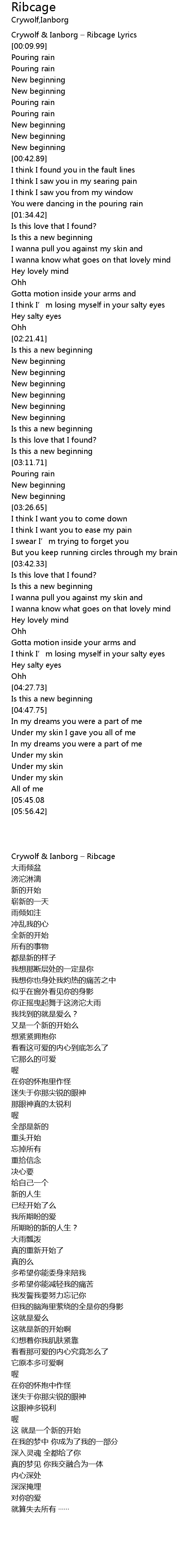 | [00:08.38] | Crywolf & Ianborg – Ribcage Lyrics |