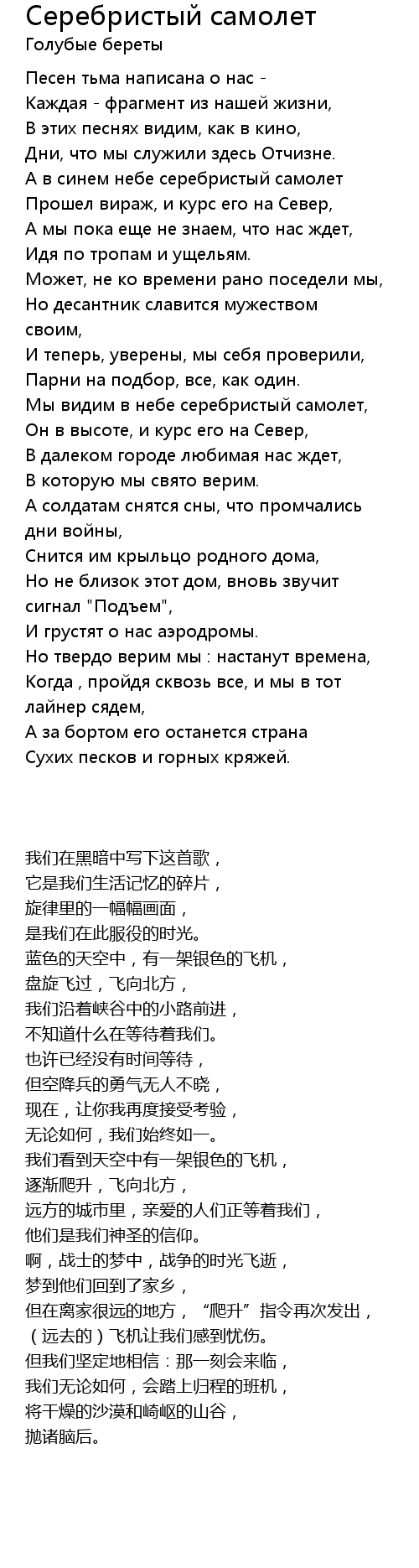 А в синем небе серебристый самолет |