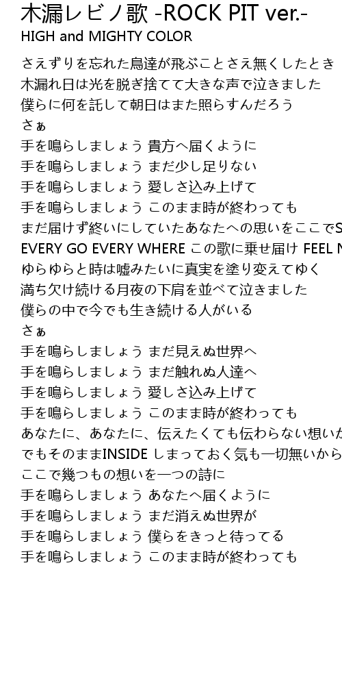 | Song | 木漏レビノ歌 -ROCK PIT ver.- |