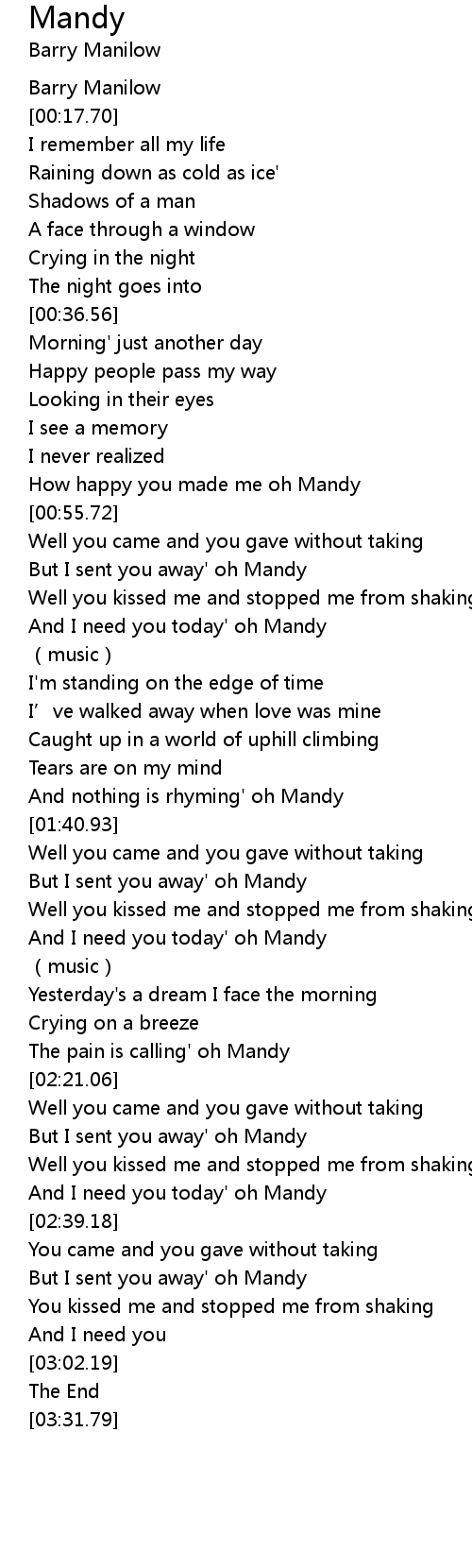 | [01:37.55] | And nothing is rhyming' oh Mandy |