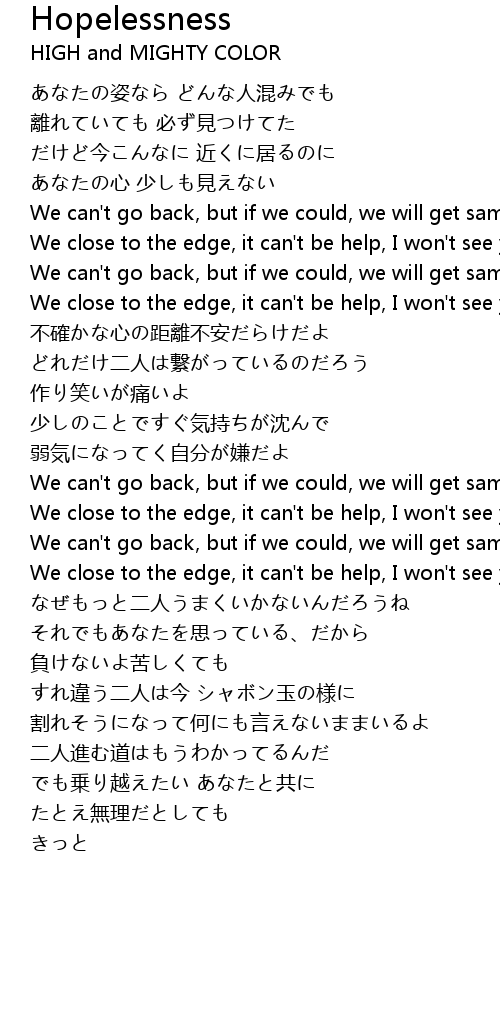| We close to the edge, it can't be help, I won't see your heart again | |