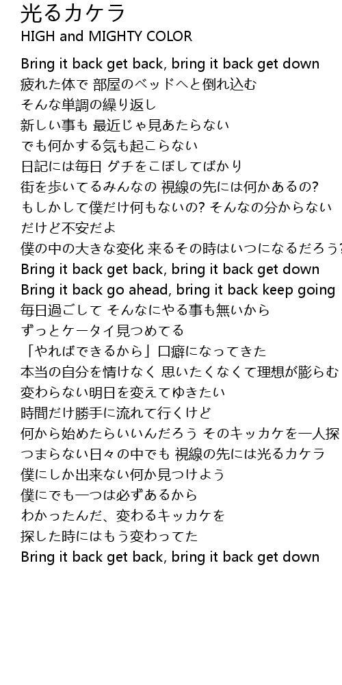 | Bring it back get back, bring it back get down | |