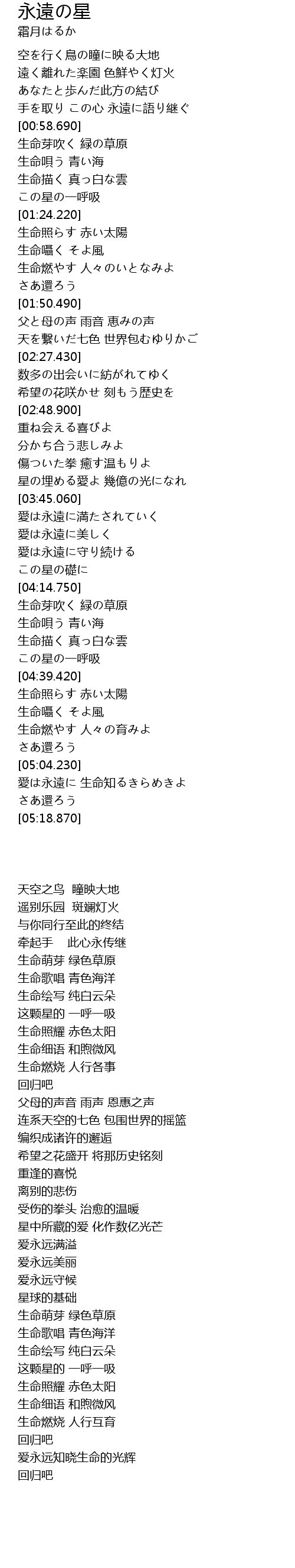 | [05:04.950] | 愛は永遠に 生命知るきらめきよ |