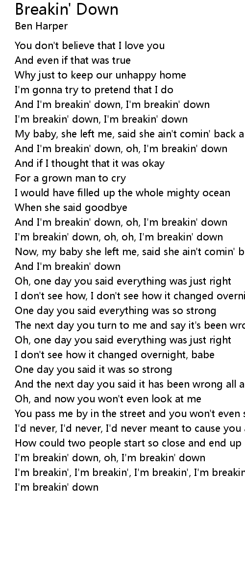 And I'm breakin' down, oh, I'm breakin' down |