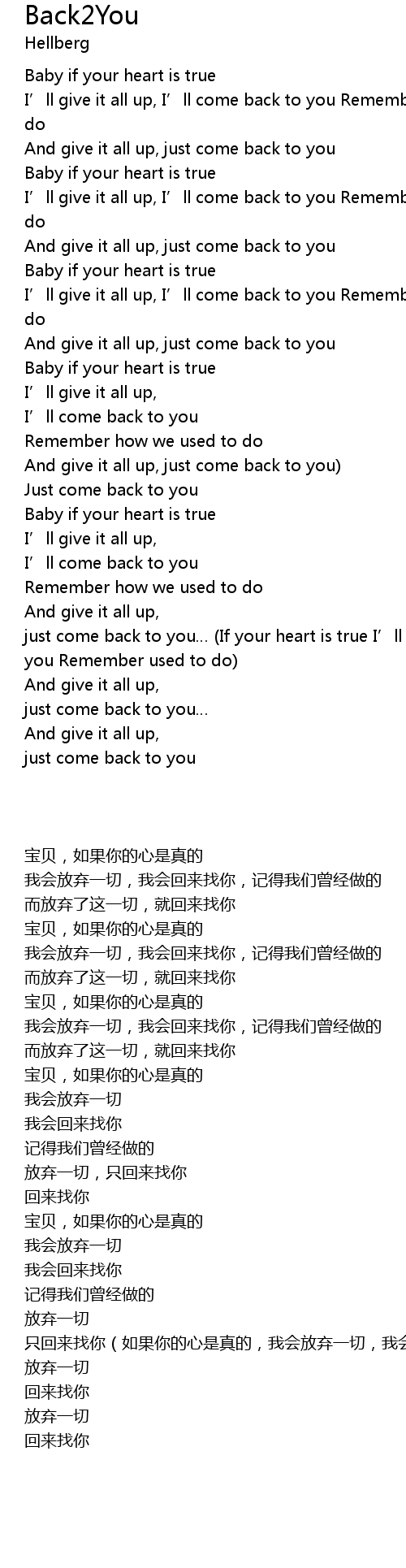 | [02:05.18] | just come back to you If your heart is true I' ll give back to you Remember used to do |