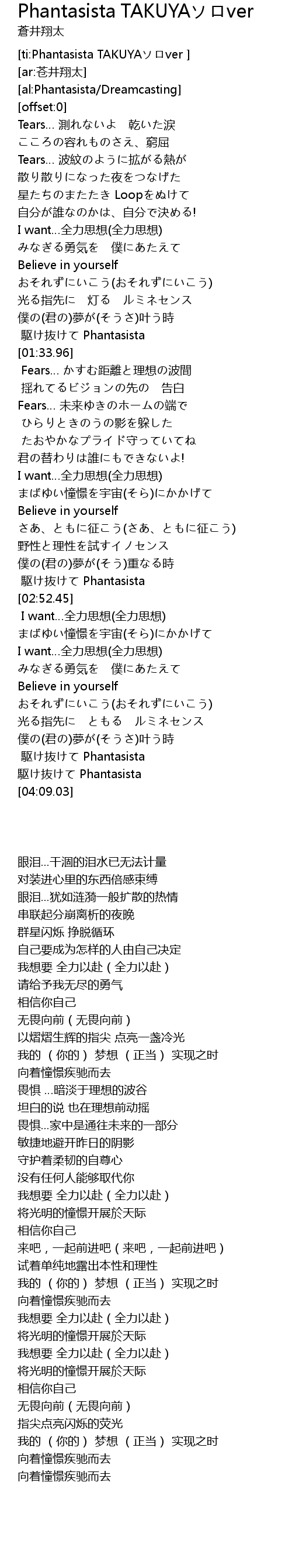 | [03:19.67] | I want quan li si xiang quan li si xiang |