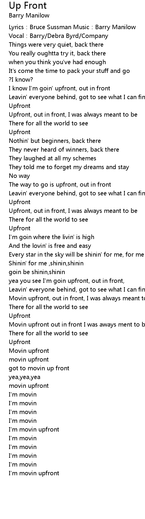 | Leavin' everyone behind, got to see what I can find upfront | |