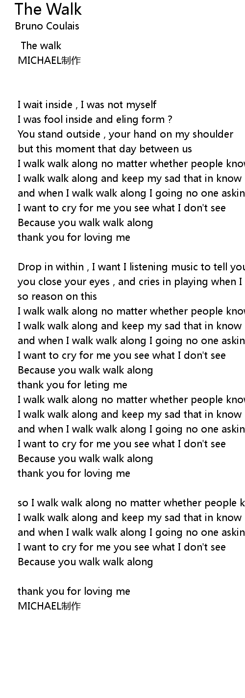 | I walk walk along and keep my sad that in know | |