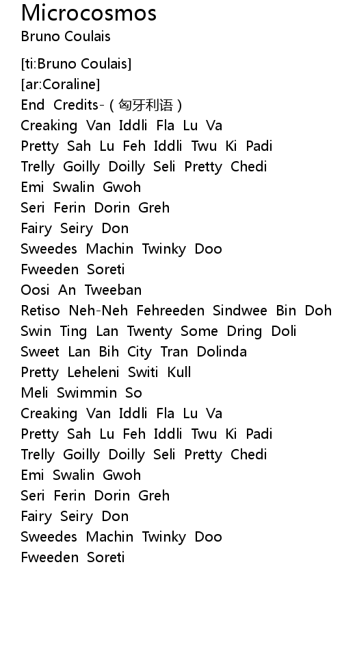 | [00:01.560] | End Credits-(匈牙利语) |