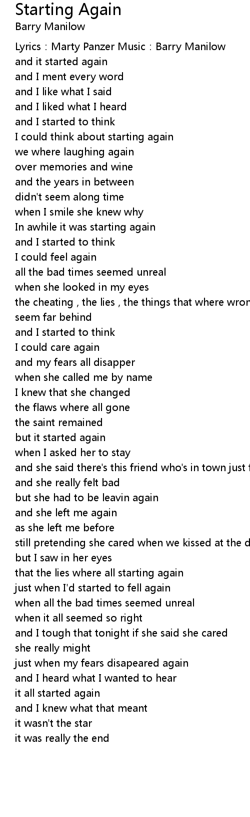 | Lyrics:Marty Panzer Music:Barry Manilow | |
