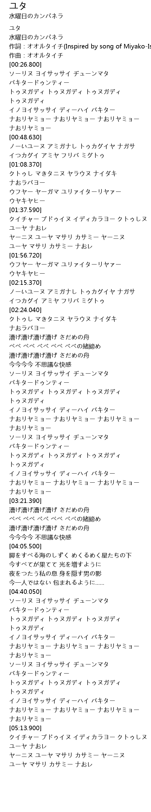 | [01:49.810] | ユーヤ マサリ カサミー ナおレ |